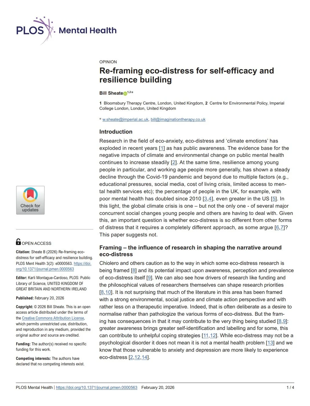 Sheate B (2026) Re-framing eco-distress for self-efficacy and resilience building. PLOS Ment Health 3(2): e0000563. https://doi.org/10.1371/journal.pmen.0000563